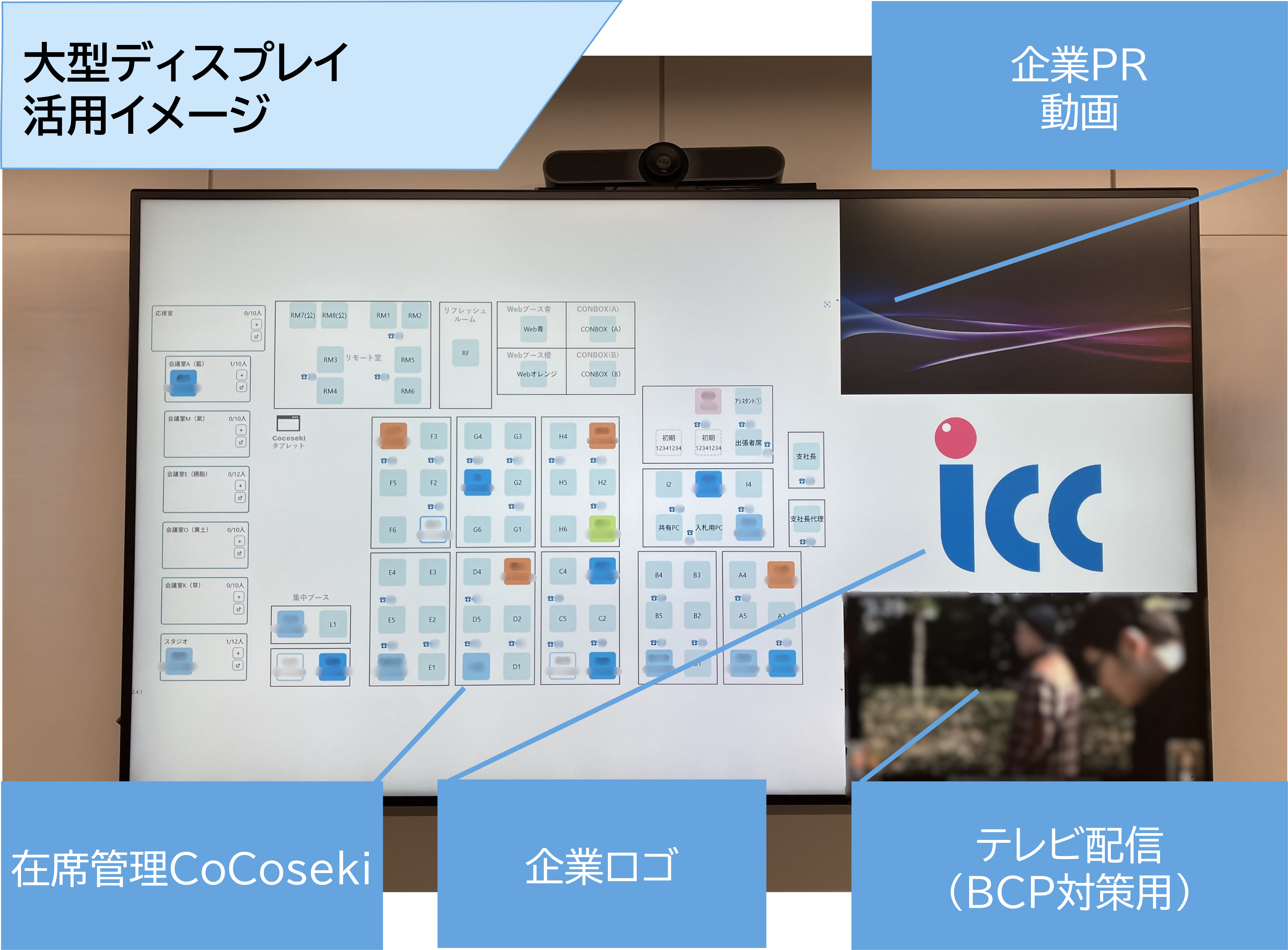 これまでは紙の座席表に毎朝手書きの負担が発生し、文字の読みづらさもありました。オフィスレイアウトの構造に加えフリーアドレス運用のため電話対応を行うアシスタントの方が「誰がどこに座っているか」を把握しづらい状況がありました。あわせてリニューアル時に大型ディスプレイを導入したこともあり、在席状況の可視化などに有効活用をしたいというご要望がありました。