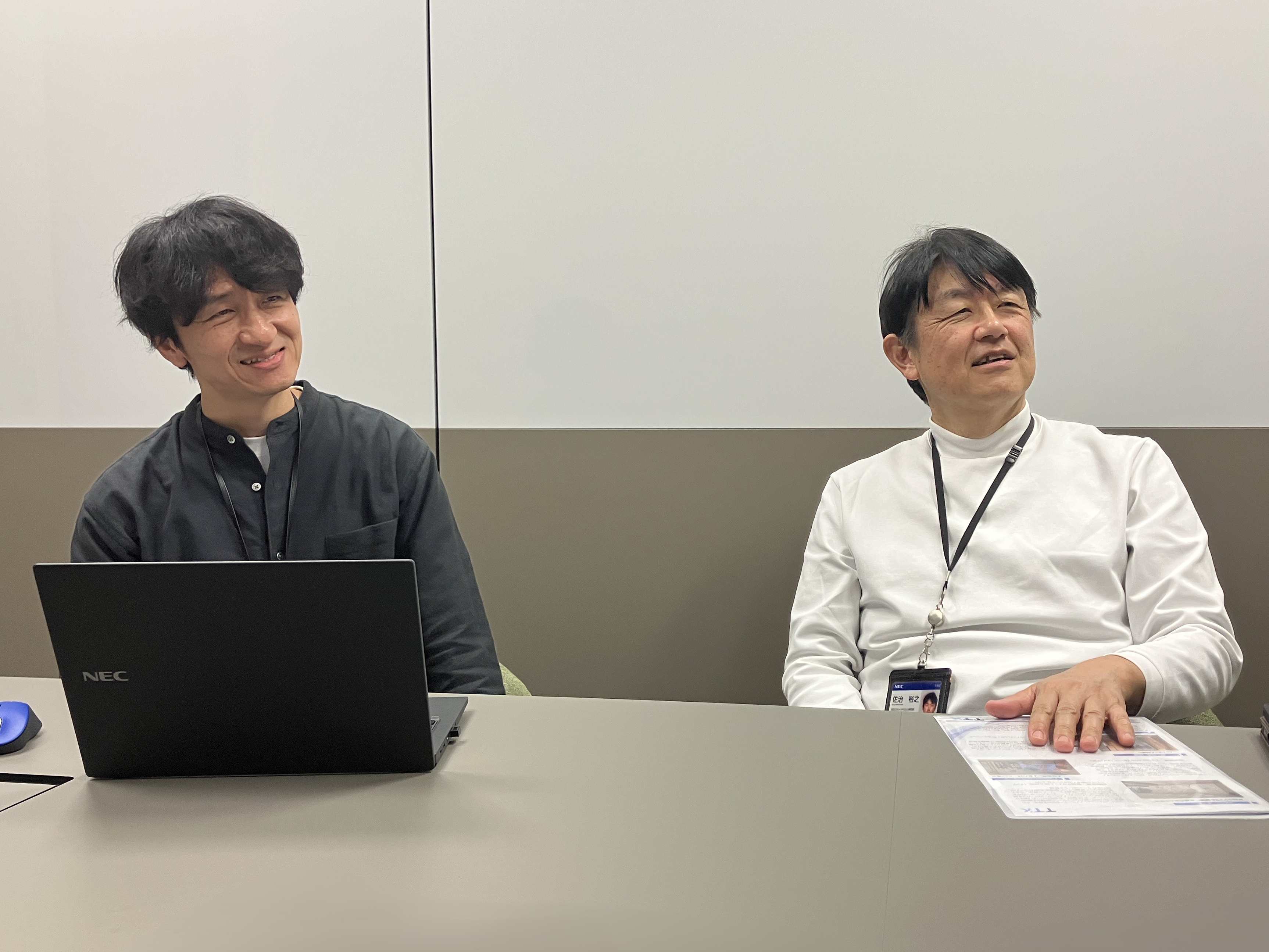 今回、共創の場にふさわしい映像設備としてLEDビジョンを導入した背景や効果について、共通業務統括部の佐治様、古山様にお話を伺いました。