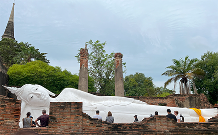 アユタヤ王朝の壮大さと栄枯盛衰を体感しました。象徴的な仏塔などは復元されている一方、戦争や侵攻で破壊された仏像が当時のまま残り、歴史の痛ましさや争いの爪痕を強く感じました。遺跡の規模の大きさと保存の難しさも含め、歴史の転換点を肌で学ぶ機会となりました。