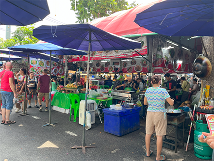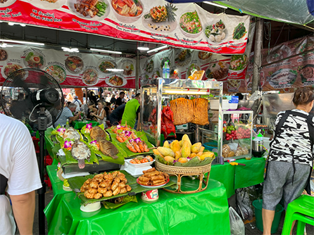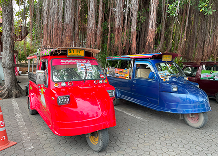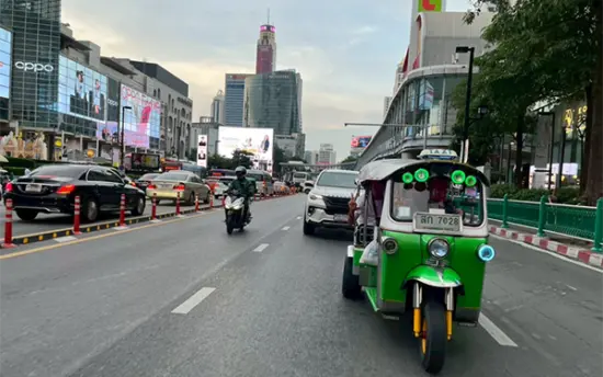 自由時間中に地下鉄や高架鉄道のほか、トゥクトゥクを含む多様な交通手段に触れ、主要観光地へ比較的スムーズに移動できる点を体感しました。一方で、市内では各所で渋滞が発生している状況も確認しました。